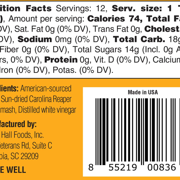 Ingredients: American- sourced honey, sun-dried Carolina Reaper pepper mash, distilled white vinegar
