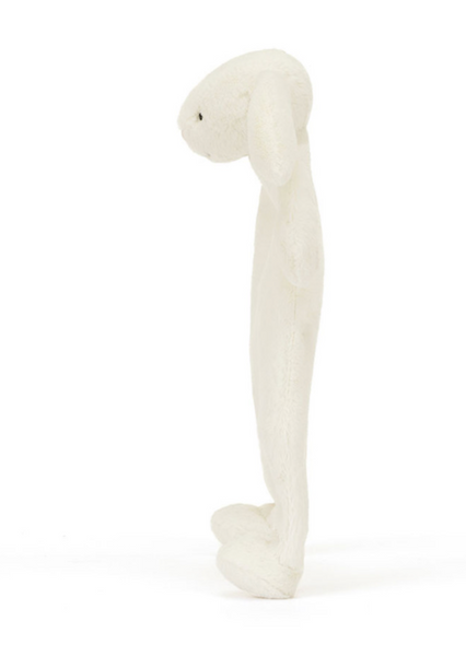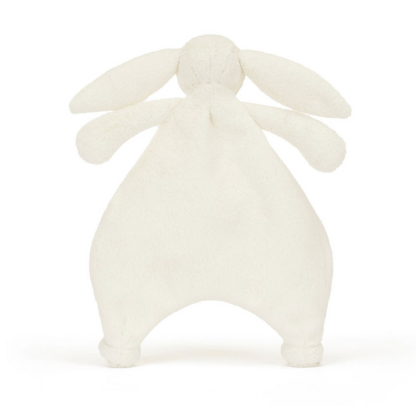 Irresistibly soft in an off-white coloured fur made from recycled fibres, Bashful Cream Bunny Comforter features our beloved Bashful Bunny signature long lop ears, a pink suedette nose and embroidered eyes. Designed with an un-stuffed body yet delicately squashy paws and bobble feet, making it easy for little hands to grab hold of and comfort themselves.