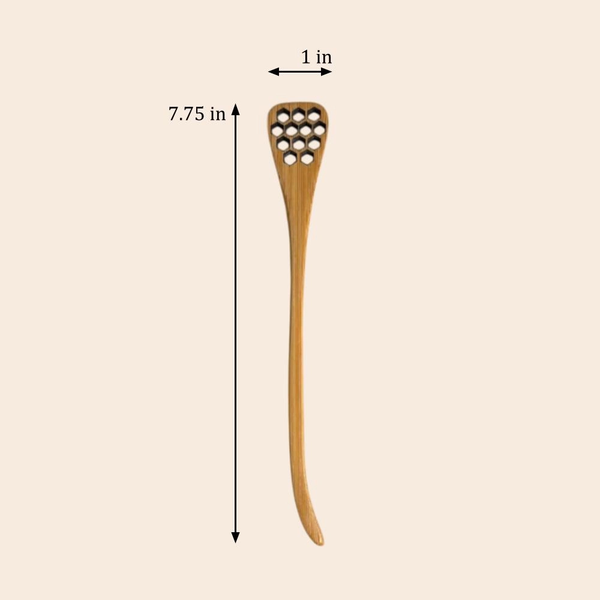 Our bamboo honey dipper makes it easy to add to tea or drizzle on to bread without the hassle or mess. The small holes at the bottom make it easy to grab honey and put on whatever you desire. Perfect for the honey lovers in your life.